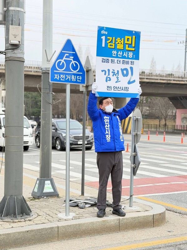 김철민 전 안산시장은 최근 초지역 인근 교차로에서 피켓을 들고 시민들에게 인사를 건네며 현장 소통 행보를 이어갔다. 현장에서는 ‘검증된, 더 준비된 김철민’이라는 문구가 담긴 홍보물을 통해 메시지를 전달했다.
