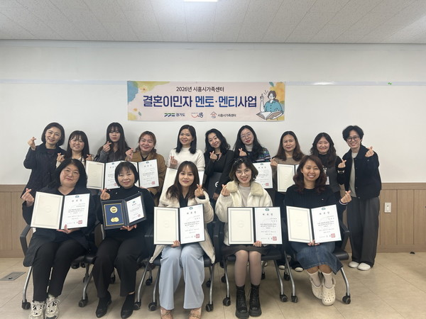 시흥시(시장 임병택)는 지난 3월 23일 시흥시가족센터에서 ‘2026년 결혼이민자 멘토‧멘티 사업(구, 다문화가족 서포터즈 운영) 멘토 위촉식’을 열고 러시아, 베트남, 중국, 필리핀, 미얀마, 일본, 캄보디아 7개국 출신 멘토 14명에게 위촉장을 수여했다.
