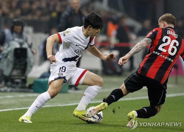 이강인은 21일 니스와의 원정 경기에 선발 출전해 후반 14분 상대 미드필더 유수프 은다이이시미예로부터 거친 파울을 당했다.