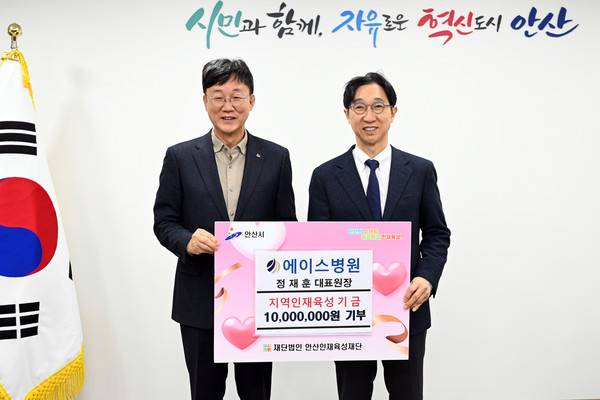 안산시(시장 이민근)는 지난 15일 에이스병원(대표원장 정재훈)으로부터 관내 취약계층 자녀의 학업 지원과 지역 인재 양성을 위한 장학금 1,000만 원을 안산인재육성재단을 통해 기탁받았다고 지난 15일 밝혔다.
